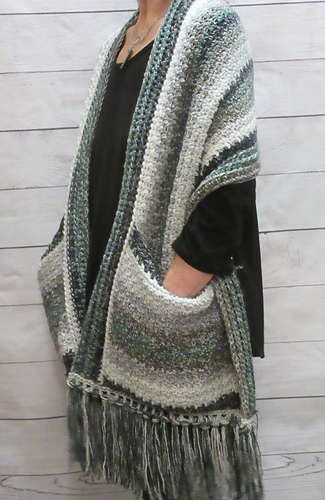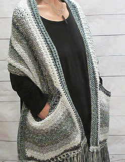 The Abney Pocket Shawl is a warm, textured wrap that features no sew (crocheted in) pockets. This pattern is easily adapted to fit any size and yarn type.