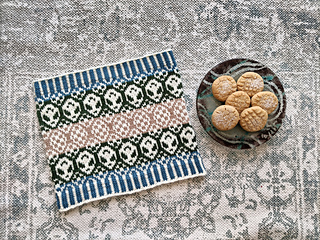 22 stitches and 24 rows = 10cm / 4” in stranded knitting, worked in the round and blocked.