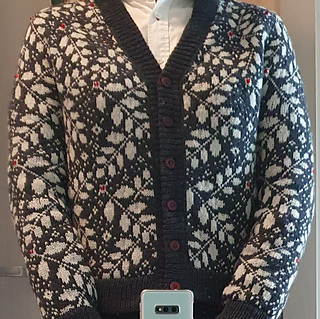 This design is easy to knit by working in a circular yoke, except for the beginning, then steeking in the center.
