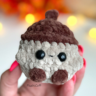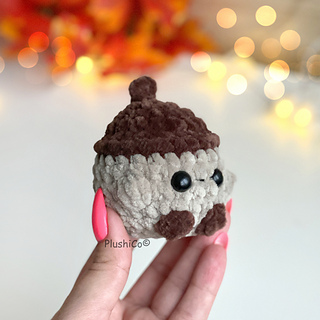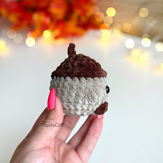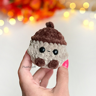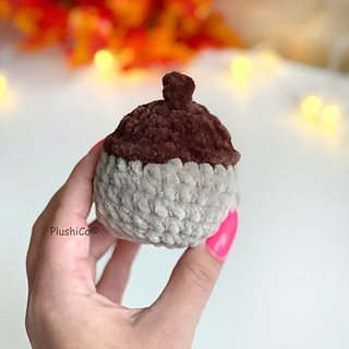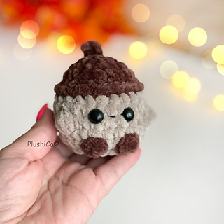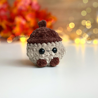 Crochet your own adorable plushy acorn — perfect for fall decor, keychains, gifts, markets, or simply adding a bit of cozy autumn charm to your home!