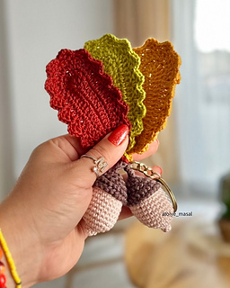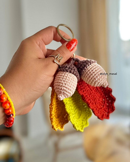 Create a cute and seasonal amigurumi acorn keychain with a matching leaf!