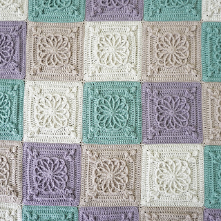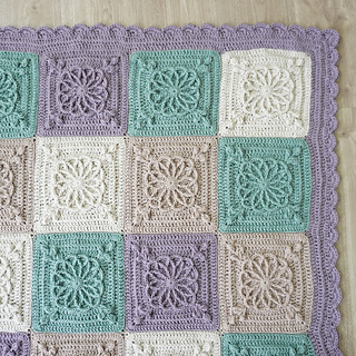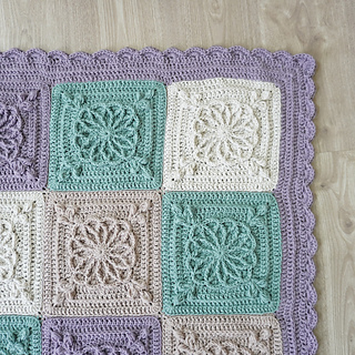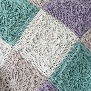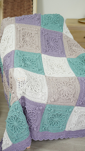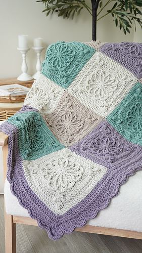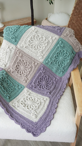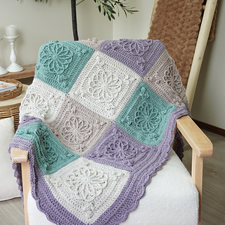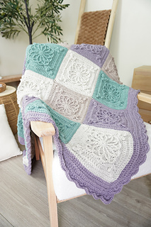 This design features beautifully raised floral granny square motifs, creating a sophisticated heirloom-style blanket with modern, calming colourwork. The combination of soft sage, lavender and warm neutrals gives this piece a serene, homely feel — perfect for contemporary interiors.