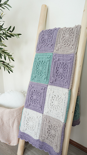 Wrap your home in soft texture and timeless elegance with this stunning floral granny square blanket pattern.
