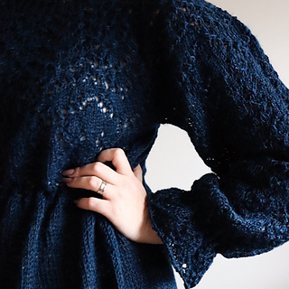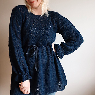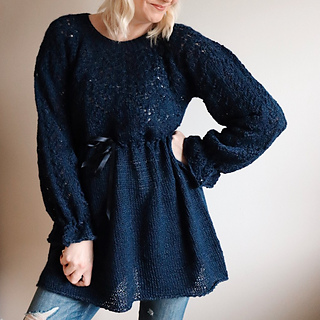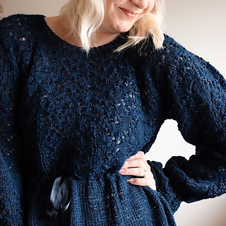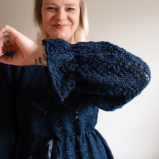 Tapestry needle, scrap yarn / extra cable, stitch markers and also some silk ribbon for the waist and sleeves.