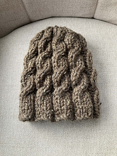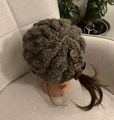 This Ponytail Cable Beanie has a button closure at the back, so you can adjust the “ponytail hole” to how low or how high your ponytail is.