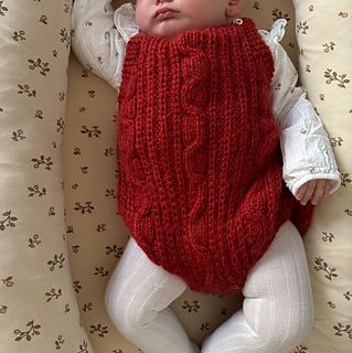 The garment is worked in one piece to eliminate unnecessary seams and includes a snap or button closure at the crotch for easy changes. This pattern covers sizes from 0–1 month to 18–24 months, making it a practical and simple project for every stage.