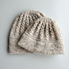 Construction: this hat is knit from the bottom up, starting with the double brim, which can be knit two ways. After the brim, lateral braids and mock cables with eyelets make up the rest of the accessory.