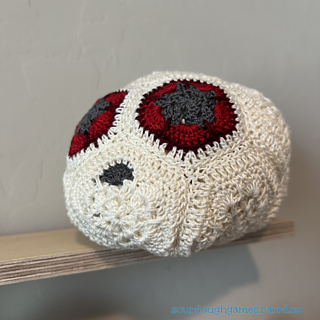 - using size 10 crochet thread -- 5 inches by 4.5 inches by 3 inches