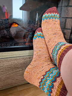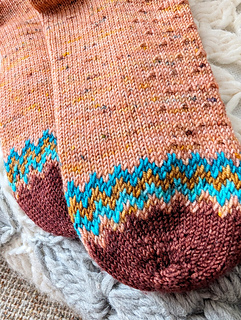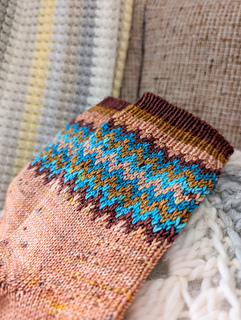 Adventurous sock knitters ready to add vibrant colorwork to their repertoire! The pattern includes clear instructions for three sizes, adjusted simply by needle size, making it accessible for those newer to colorwork while still engaging for experienced knitters.