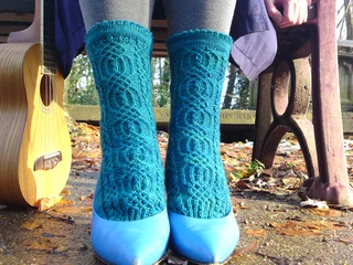 Intuitive yet challenging, the central cables that run down the front and back of the socks complement rather than mirror each other, while the twin cables that flank them work to provide a grounding sensibility should things start to seem too tough.