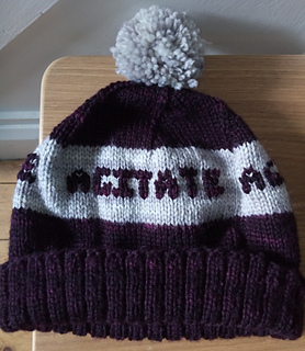 Frederick Douglass’s last words were, reportedly, “Agitate, agitate, agitate!” I designed this toque for a friend, a scholar who works on Douglass’s writing and activism. Times being what they are, we all need a craftivist toque! This toque is knitted in the round, with the lettering added in duplicate stitch afterwards.