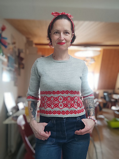 Instead of going my usual design route, this sweater features the colourwork at the bottom of the body and sleeves.