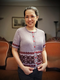 Techniques used: Lifted increases, stranded colourwork, Ladderback Jacquard, Backwards loop cast-on, knitting in the round, Icelandic bind-off. If working the cardigan option: steeking and yarnover buttonholes.