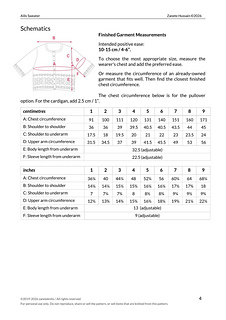For the cardigan, add 2.5 cm / 1” to the given pullover measurement.