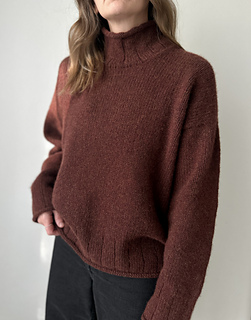The Air Sweater is worked from the top down featuring dropped shoulders and a relaxed silhouette. The sweater offers a minimalist front and the back showcases an eye-catching detail that matches the wide ribbing at the edges. With timeless shaping and thoughtful construction, the Air Sweater is a classic piece that will become a forever favorite in your handmade wardrobe.