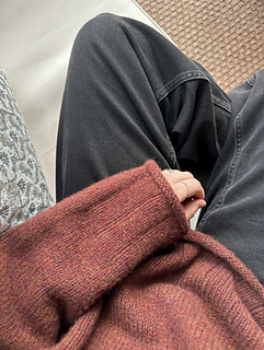 The Air Sweater has around 10¾-11¼“ {26.5-28 cm} of positive ease for sizes XS-L and gradually less positive ease for sizes XL-5XL. Sizes XS (S) M (L) XL (2XL) 3XL (4XL) 5XL correspond to a bust circumference of 30 (34) 36 (40) 44 (48) 52 (56) 60” {76 (86) 91 (101.5) 112 (122) 131.5 (140) 152 cm}. For example: If you measure a 34” {86 cm} bust you will make size (S) with a finished bust circumference of 45¼” {113.5 cm}. Sample shown modeled is 5’ 2” {157 cm} tall wearing Size (S) with approx. 11¼“ {28 cm} positive ease.