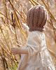 The brownish-pink balaclava in the pictures in the pattern is knitted in Gepard Puno in the color 422 Old Rose. The white balaclava is knitted in CaMaRose snowflake in the color Snehvid.