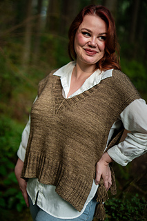 Alchemist Slipover is all about refined ease: the oversized fit, shaped shoulders and armholes, and deep V-neckline create a silhouette that’s both flattering and endlessly wearable. With adjustable i-cord tassel closures at each side, you can style the fit just as you like, adding a unique, playful detail to this already striking design. Knit in smooth stockinette with seamless construction, Alchemist Slipover combines meditative knitting with thoughtful finishing touches that elevate it beyond the usual sweater vest.