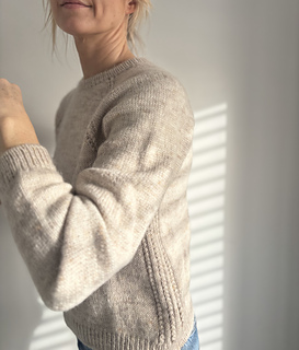Aldeburgh Sweater is designed to have approximately 19.5 cm of positive ease, meaning it is designed to be approximately 19.5 cm larger in circumference than your bust measurement.