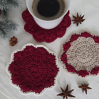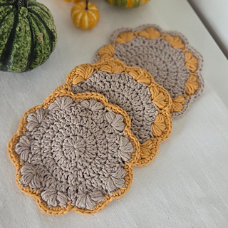 Thank you for wanting to crochet coasters! They have a beautiful and sweet texture that resembles little flowers. These are perfect if you want to make a bunch for a market, teachers, gifts—or just for yourself. Or why not as a little hostess gift?