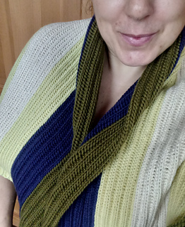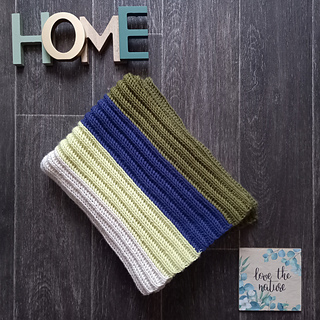 This scarf is knitted in one piece, using 4 contrasting colours (you can use as many contrasting colours as you want)