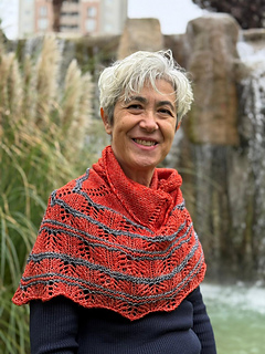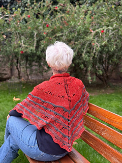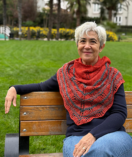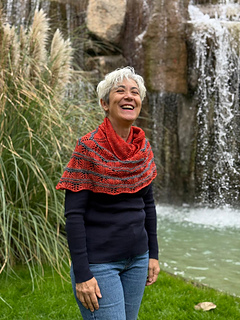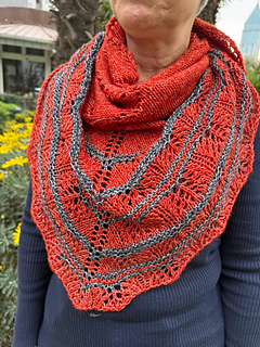 Worked from the tip upward, forming an expanding asymmetric triangle. Increases, lace texture, and optional color shifts create the signature flame-like movement.