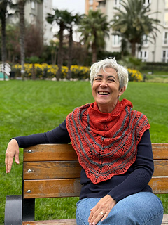 Alev means flame in Turkish, and this shawl captures the fluid, glowing motion of rising fire. Its flowing curves and shifting lines create a piece that feels both modern and timeless. The rhythmic stitch pattern offers a soothing, meditative knitting experience, while the gentle color transitions let your yarns shine in their best light.