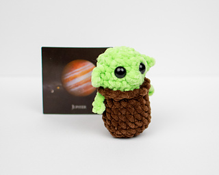 Your finished alien will be about 3–4 inches (8–10 cm) tall when made with the recommended yarn and hook.