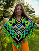 This design is part of my poncho collection. I use a UV reactive yarn and make them for festivals. It’s a fun and warm piece of clothes. I use two different colour combinations, one for each side.