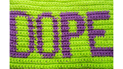 Coordinating Color (CC): ½ Skein Redheart Super Saver in “Medium Purple”