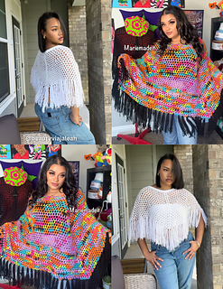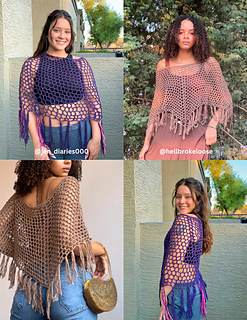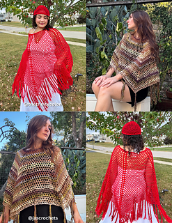 The All Seasons Poncho is a beginner friendly, fully customizable layering piece. This design is crocheted entirely with DCs and CH stitches to create a mesh pattern, with increases worked on every row. It also features loose (or textured) fringe along the bottom to create movement and flow. The All Seasons Poncho can be made cropped, mid- length, or full length, and can be crocheted with any weight yarn, or mixed fibers for a scrappy look! Layer this piece over a turtleneck for winter, or thrown over a bikini as a summer cover-up.