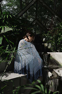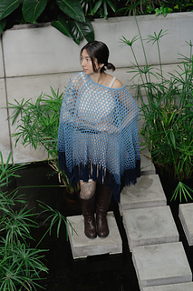 Construction - Garment is crocheted top-down, starting at the neckline and finishing at desired length. Lastly, a fringe border is added along the bottom row.