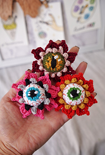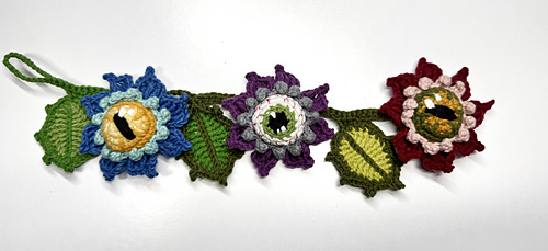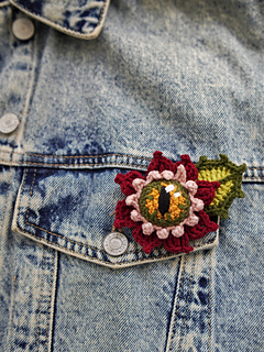 This pattern consist of 10 pages of the detailed step-by-step description for crocheting flower with regular and dragon eyes and leaf in the pdf format and contain more than 60 photos of process, several links to videos of tricky moments.