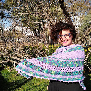 Este chal está inspirado en los llanos venezolanos, los colores con los que los tejí me recuerdan a los atardeceres que viví en un viaje scouts en el año 1996, así que al tejer esta pieza rememoraba mi primer campamento scouts, cuando tenía 10 años de vida. Es un recuerdo que siento como si fue ayer.