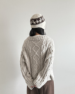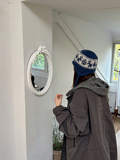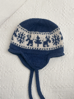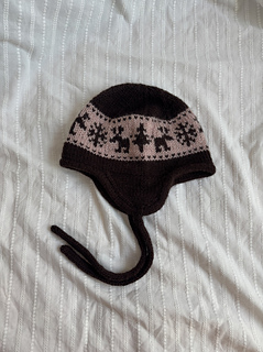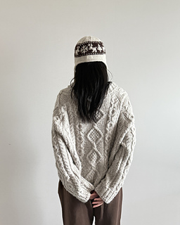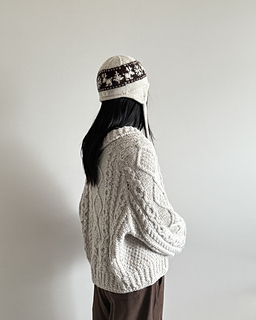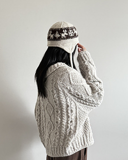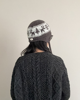 The Alpi Earflap Hat is a charming earflap hat featuring a two-color stranded pattern. It is offered in a free size that fits an average adult head circumference (54–58 cm).