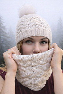 Classic cables flow across the sides of this cowl in a winding pattern inspired by snow covered mountain slopes. This pattern is worked flat and seamed at the end.