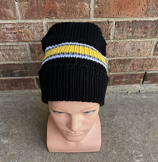 The Alpine Cuffed Beanie was designed to mimic the Carhartt Cuffed Beanie. Its 3” cuff keeps your ears warm and looks great on any guy or gal. This hat has a unique short rows crown and utilizes a bind off that can only be created using the Flexee Loom Links Skinny loom.