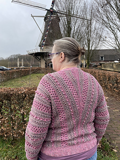 Alula features a seamless construction with thoughtfully placed details. You begin with a provisional cast-on at the upper arm, then work the body sideways. A double-sided provisional cast-on is used to create an invisible side seam. The front and back are worked together as one piece until the neckline, where they are separated. Short rows then shape the neckline while the knitting continues toward the center.
