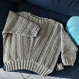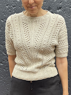 The front and back are worked in one continuous piece, joined seamlessly through a two-sided provisional cast-on. This clever technique eliminates side seams entirely and creates a garment that flows naturally around the body.