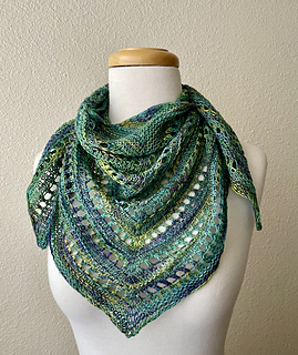 Knit this gorgeous textured triangle shawl from the top down! It looks complex, but none of the stitches used are very complicated. This simple triangle can be knit up in just one or two skeins of Malabrigo Yarn Sock or a similar soft sock yarn of equal yardage, but you can make it larger easily if you’ve got more yarn and ambition.