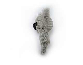 If done with DK/light worsted yarn (for example Merino 120 from Lang Yarns) and a size D (3.0 mm) hook, your koala will be about 5’’ (12-13 cm) tall.