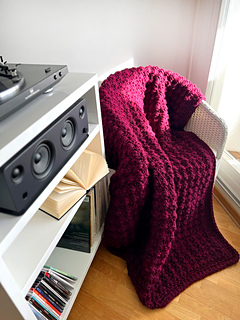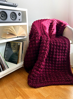 The Amarena Blanket is a richly textured crochet blanket designed to feel warm, substantial, and deeply comforting. Its bold stitch pattern creates a striking surface with beautiful depth, resulting in a blanket that looks elegant while remaining wonderfully cozy and practical.