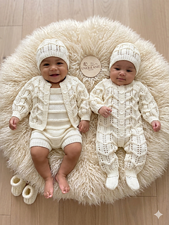 Wrap your little one in the delicate textures of the Amari Collection, a sophisticated knitting pattern designed for those who cherish classic craftsmanship and modern convenience. This cohesive set features an intricate, lace-inspired diamond motif that creates a stunning visual depth while remaining soft and breathable for delicate skin.