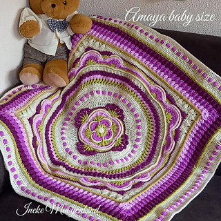 There are also details with the amounts used for baby size and compleet blanket. There is a space to fill in your own colours with the amounts per round for if you would like to make it with your stash.