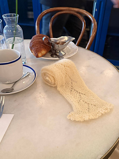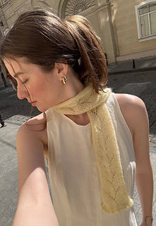 A lightweight and elegant scarf pattern crafted with a delicate blend of silk and mohair. The design creates an airy, soft texture with a subtle halo, making it perfect for layering in any season.