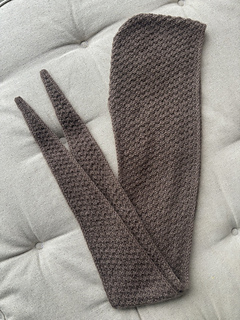 The Amelia Hood is a hooded scarf worked back and forth in double moss stitch with i-cord edges. The two sides of the scarf are worked separately and then joined to create the hood. There are no seams – it’s worked all in one piece.