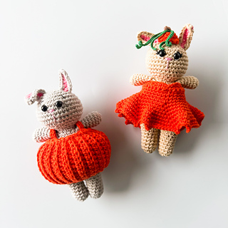 - The outfits (dress, overalls, hat, etc.) shown in some photos are sold separately as part of the AmiCrewMi Wardrobe Collection. You can find all my animal patterns and outfits at this link.