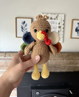 Create your own mini amigurumi turkey with this easy to follow pattern! Finished products are about 8 inches tall and work up quite quickly! Pattern includes step by step instructions with helpful photos along the way!