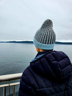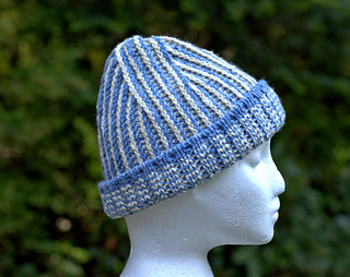 This unique stitch pattern is an effort to upgrade what might be perceived as a usual 2 by 2 ribbing. The most satisfying simplest knit elevated by use of 2 yarn types and colors to create a reversible hat that features vertical striping on one side and marled horizontal striping on the other. Or choose to work it solid for singular ribbed texture, as well as select how to finish the crown, cinched or squared, to suit your preference!