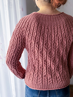 Das Design wird nahtlos von oben nach unten gearbeitet und ist flexibel anpassbar. Sowohl die Tiefe der Passe als auch die Länge von Körper und Ärmeln können individuell gewählt werden, um die gewünschte Passform zu erzielen.